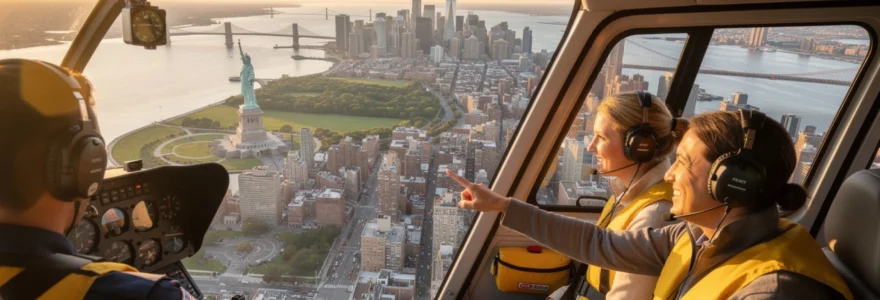 Survoler Manhattan en hélicoptère représente l’une des expériences les plus spectaculaires qu’un visiteur puisse vivre dans la métropole américaine. Cette aventure aérienne offre une perspective unique sur l’une des skylines les plus reconnaissables au monde, révélant l’architecture grandiose et l’urbanisme complexe de New York depuis les airs. Les passagers découvrent un panorama à 360 degrés qui transforme leur perception de cette ville emblématique, où chaque vol devient un moment inoubliable gravé dans la mémoire.