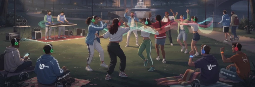 Une silent party repose sur un concept aussi simple qu’ingénieux : remplacer les enceintes traditionnelles par des casques audio sans fil distribués à chaque participant. Cette approche révolutionne l’expérience musicale collective en permettant à chacun de contrôler son volume sonore tout en dansant au même rythme que les autres. À Central Park, cette formule prend tout son sens, car elle respecte les réglementations strictes concernant les nuisances sonores tout en créant une atmosphère festive unique. Les casques utilisés lors de ces événements sont équipés de LED qui changent de couleur selon la chaîne musicale sélectionnée, créant un spectacle visuel fascinant pour les observateurs extérieurs. Cette technologie permet également aux participants de basculer instantanément entre différentes ambiances musicales, offrant une liberté de choix sans précédent dans l’univers des soirées dansantes.